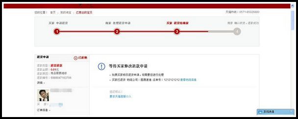 买家操作退货的情况下,商家拒绝他的退款协议,此时将没有超时,如果买卖双方都不申请客服介入,买卖双方也未作任何操作,交易将一直放下去。如下图 此时建议商家申请客服介入进行处理。