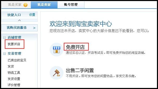 第一步:进入“卖家中心”,点击“我要开店”或“免费开店”,在“开店认证”处点击“开始认证。