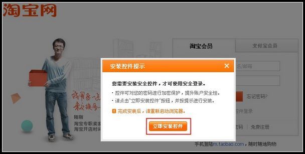 若您未安装过安全控件,“使用安全控件登录”将不被勾选,在您主动勾选后,系统会自动弹出安装控件提示,点击“立即安装控件”,安装后即可使用安全登录。