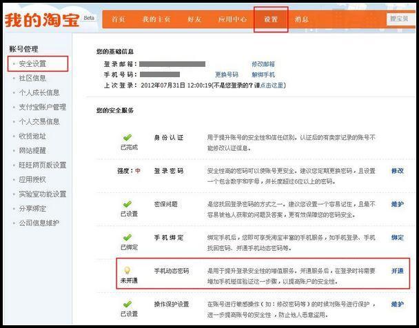 动态密码登录服务目前还处于测试阶段,只向注册满3年的会员免费开放,符合条件的会员登录后进入“我的淘宝”—“设置”—“