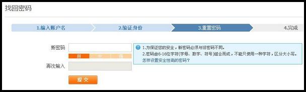 第四步:重置密码,输入您的新密码,点击“提交”;