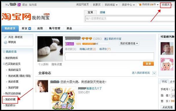 2、登录“我到淘宝”—“我的首页”—“我的收藏”查看。