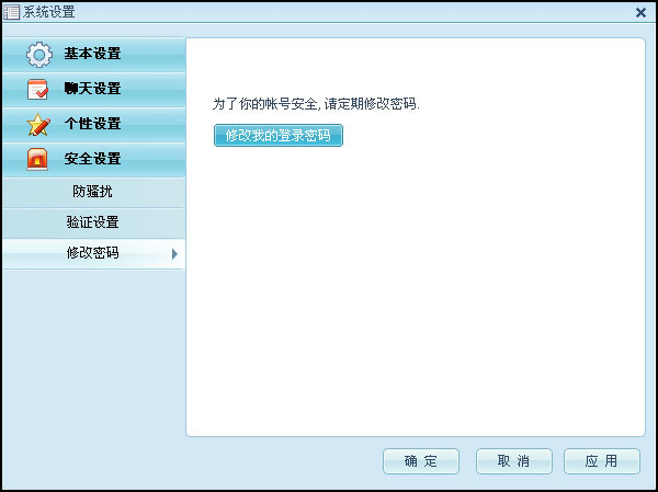 点击阿里旺旺主窗口中“系统设置”,查看安全设置: