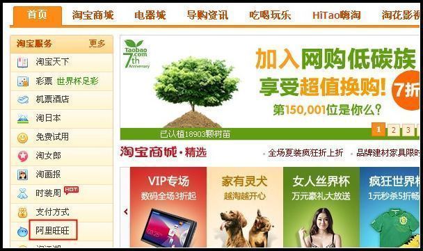 1、第一步:登录淘宝首页,找到左边的“阿里旺旺”点击进入,如下图: