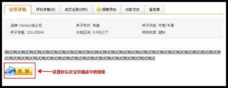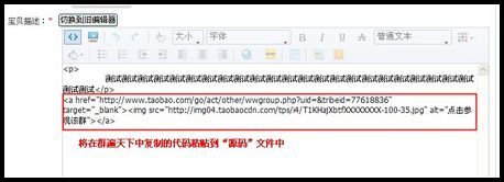 7、第七步:群遍天下设置成功后在宝贝描述中的效果,如下图: