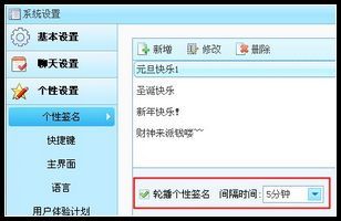打开阿里旺旺主界面,点击阿里旺旺签名边上的小三角形,点击”设置“—”个性签名“—”轮播个性签名“,在”轮播个性签名“前打勾,在间隔时间中可以自行选择间隔时间哦~如图: