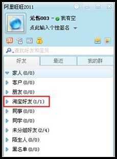 通过短信版添加的好友会显示在好友分组——“淘宝好友”列表中,如下图: